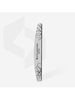Lima mineral para uñas. Forma de media luna. Permite corregir con cuidado la forma de las uñas naturales y postizas sin destruir la placa y sin formar micro-fisuras en ella. Para manicura y pedicura.